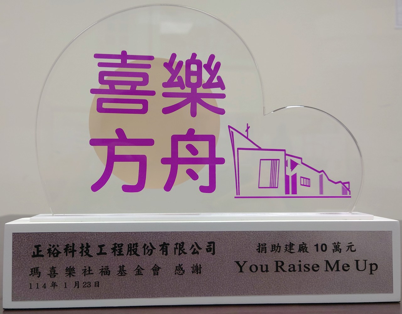 正裕科技捐贈瑪喜樂社福基金會十萬元整